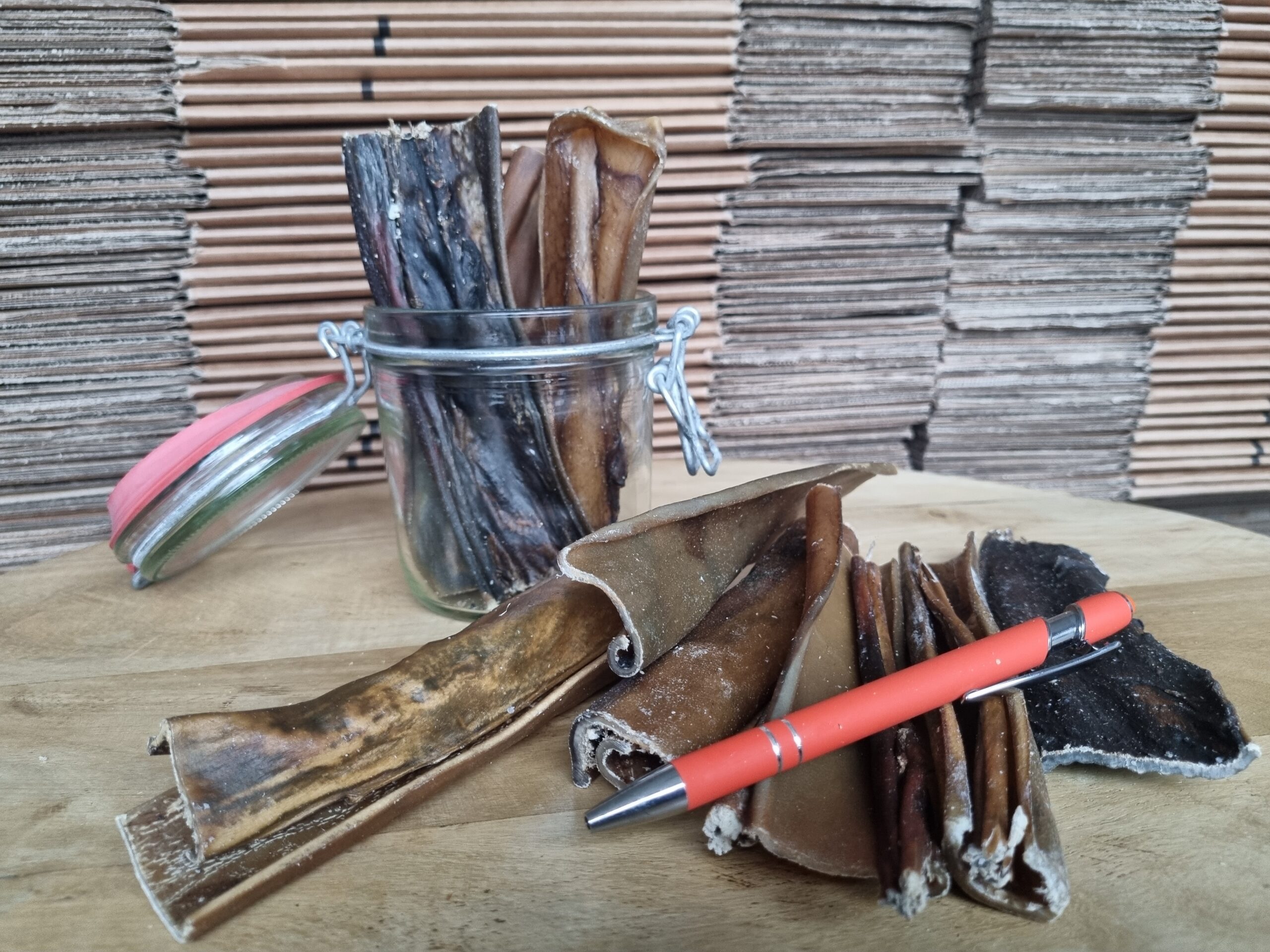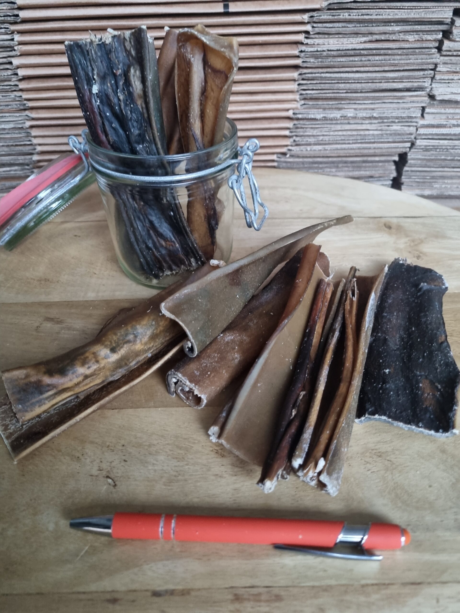 Herten kophuid zijn stukken van ongeveer 15 cm.