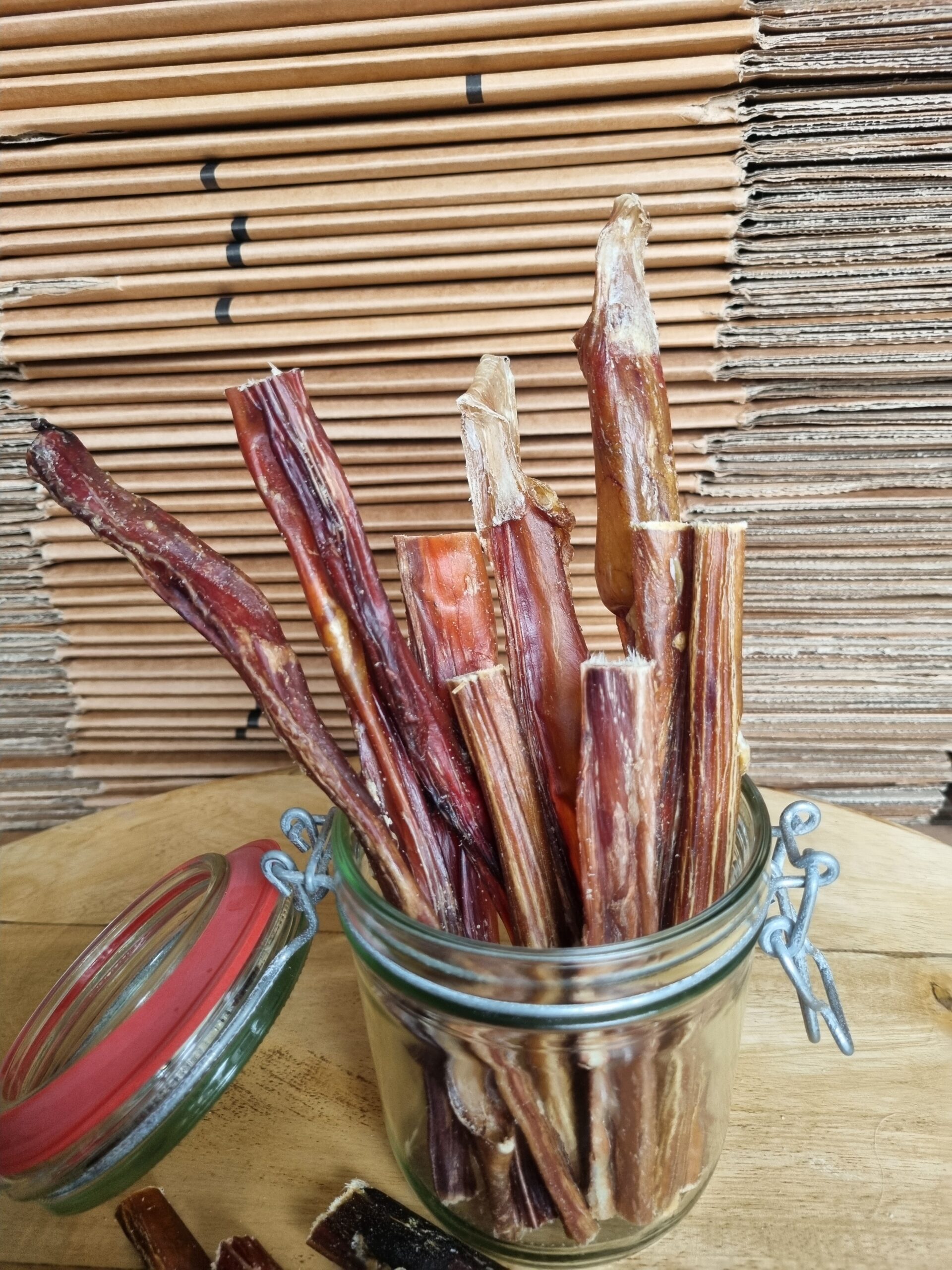 De kalfspeesjes zijn van prachtige kwaliteit en een echte exclusieve snack voor uw hond. Heerlijke kauwsnack of als een traktatie tussendoor. Kalfspeesjes zijn laag in vet, dus ook geschikt voor de hond die gevoelig is om in gewicht aan te komen of overgewicht hebben.