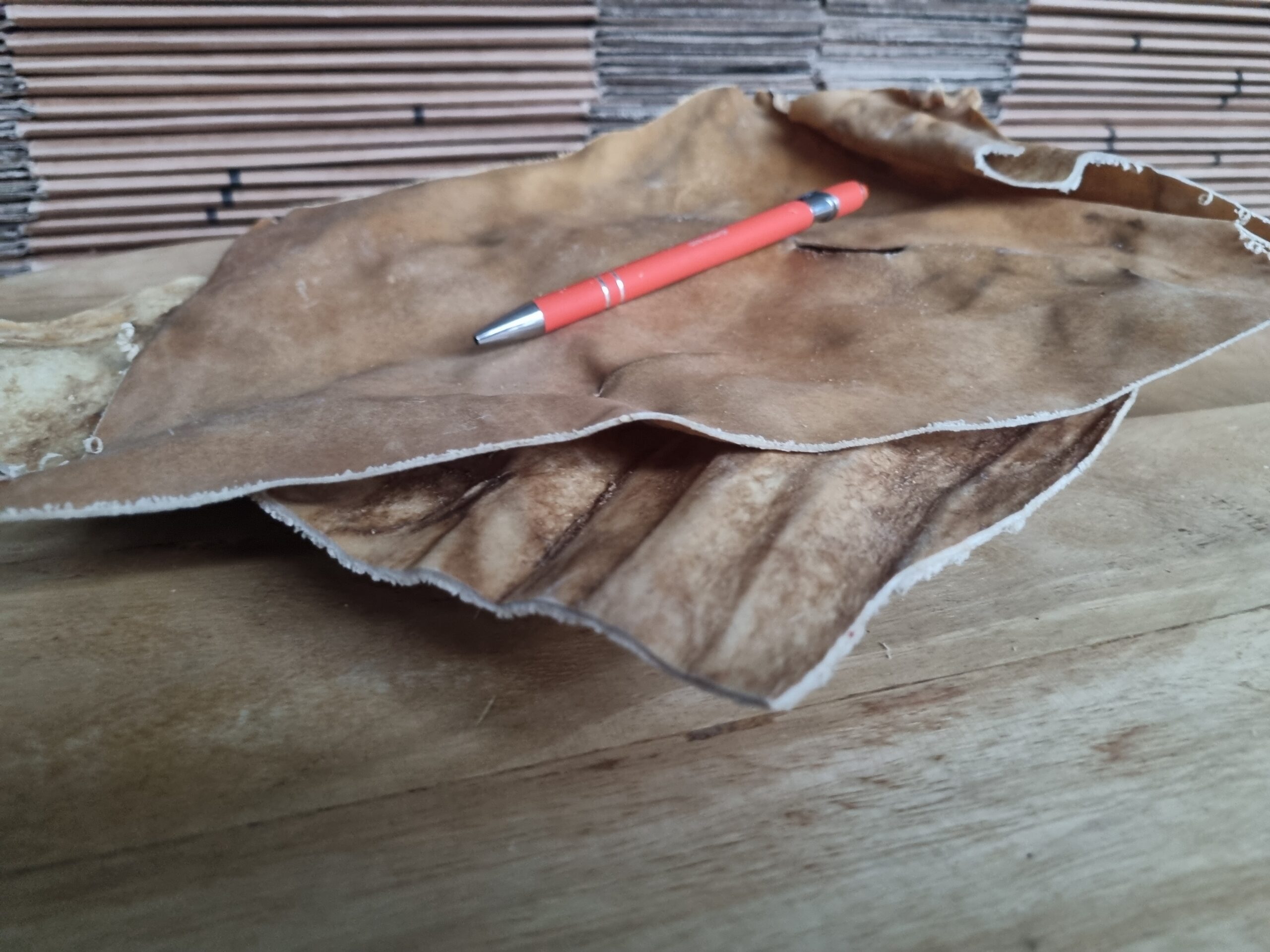 Paarden kophuid platen zijn ongeveer 30x30m. Er kunnen ook kleinere platen tussen zitten. Kophuidplaten van paard zijn dunner dan die van rund!